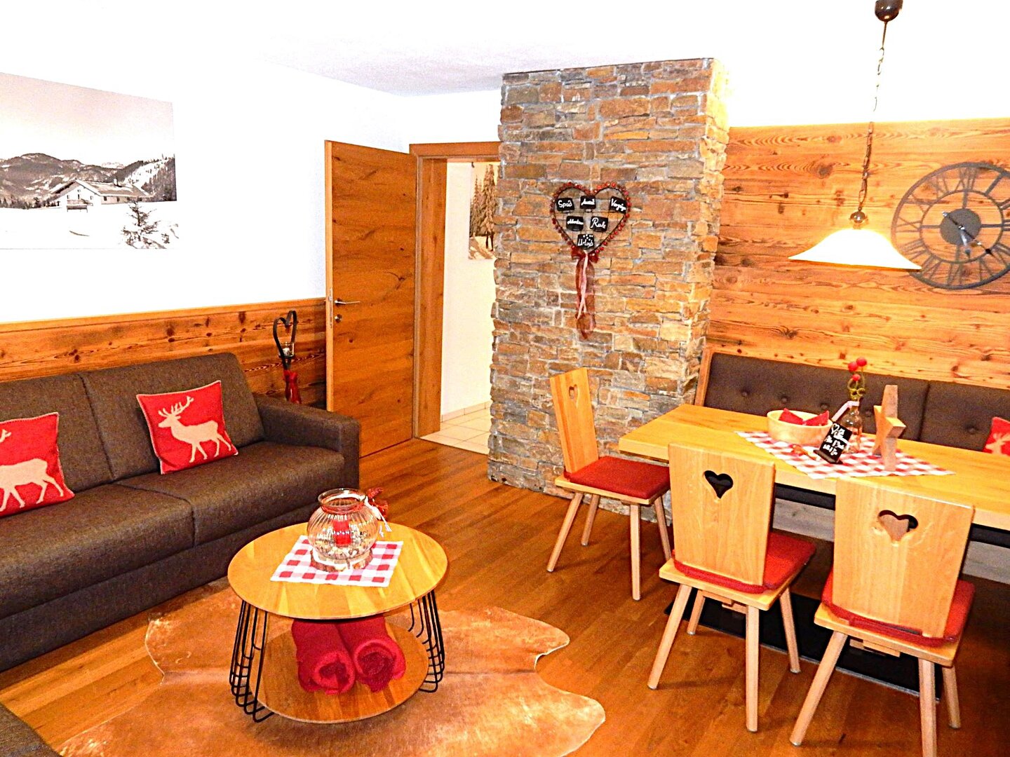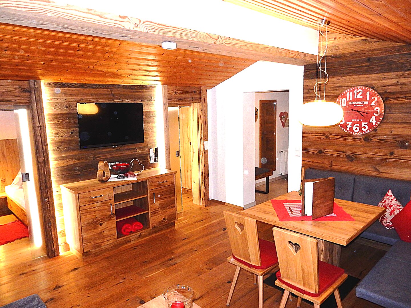 Die bezaubernde, lichtduchflutete Drei-Raum-Wohnung Klausenberg lässt keine Wünsche offen und begeistert mit einem wunderschön harmonisch und sehr stilvoll eingerichteten Wohnraum mit Naturholzboden und Natursteinmauer, lauschiger großer Essecke, zwei kuscheligen Sofa´s sowie einem Flachbild-TV. Auch die mit Liebe zum Detail eingerichteten zwei separaten Schlafräume, jeweils mit komfortablen Doppelbett, sind mit Naturholzböden ausgestattet. In der bestens ausgestatteten Wohnküche mit Spülmaschine und schicker Essecke finden Sie alles, was Sie zum Zubereiten Ihrer "Urlaubsschmankerl" brauchen. Ein modernes Bad mit flauschigen Hand- und Duschtüchern sowie Föhn sowie ein großer, lauschiger Rundum-Balkon mit Mittag- und Abendsonne und traumhaften Bergblick erwartet Sie...