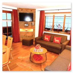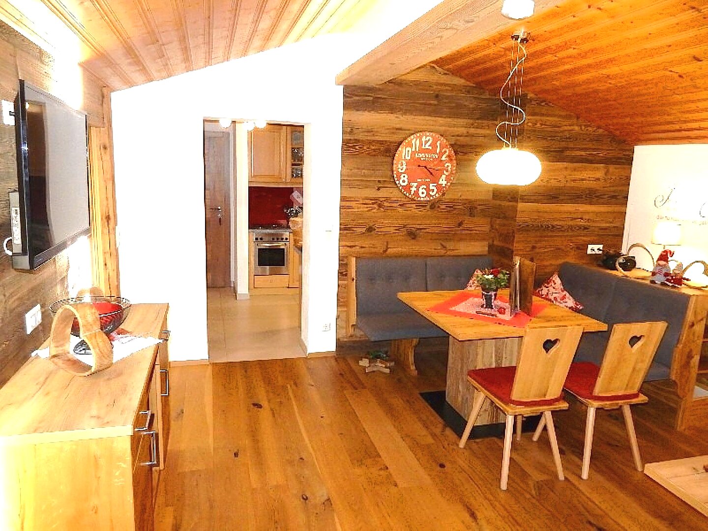 Die wunderschön idyllische, mit dem natürlichen Charme von Naturholzmöbeln eingerichtete Drei-Raum-Wohnung Almgenuss lässt keine Wünsche offen und begeistert mit einem besonders harmonisch und sehr stilvoll eingerichteten Wohnraum mit komfortablen Wohlfühlsofa, schicker großer Essecke und Flachbild-TV. Ein romantischer Mansarden-Schlafraum mit komfortablen Doppelbett und ein kuscheliger zweiter Mansarden-Schlafraum mit 2 Einzelbetten für Kinder, sorgen für ein himmlisches Schlafvergnügen. In der bestens ausgestatteten Küche mit Spülmaschine finden Sie alles, was Sie zum Zubereiten Ihrer "Urlaubsschmankerl" brauchen. Ein modernes Bad mit flauschigen Hand-/Duschtüchern und Föhn sowie ein separater Raum für´s Gepäck und ein großer lauschiger Balkon mit Mittag-/Abendsonne und traumhaften Bergblick erwartet Sie...