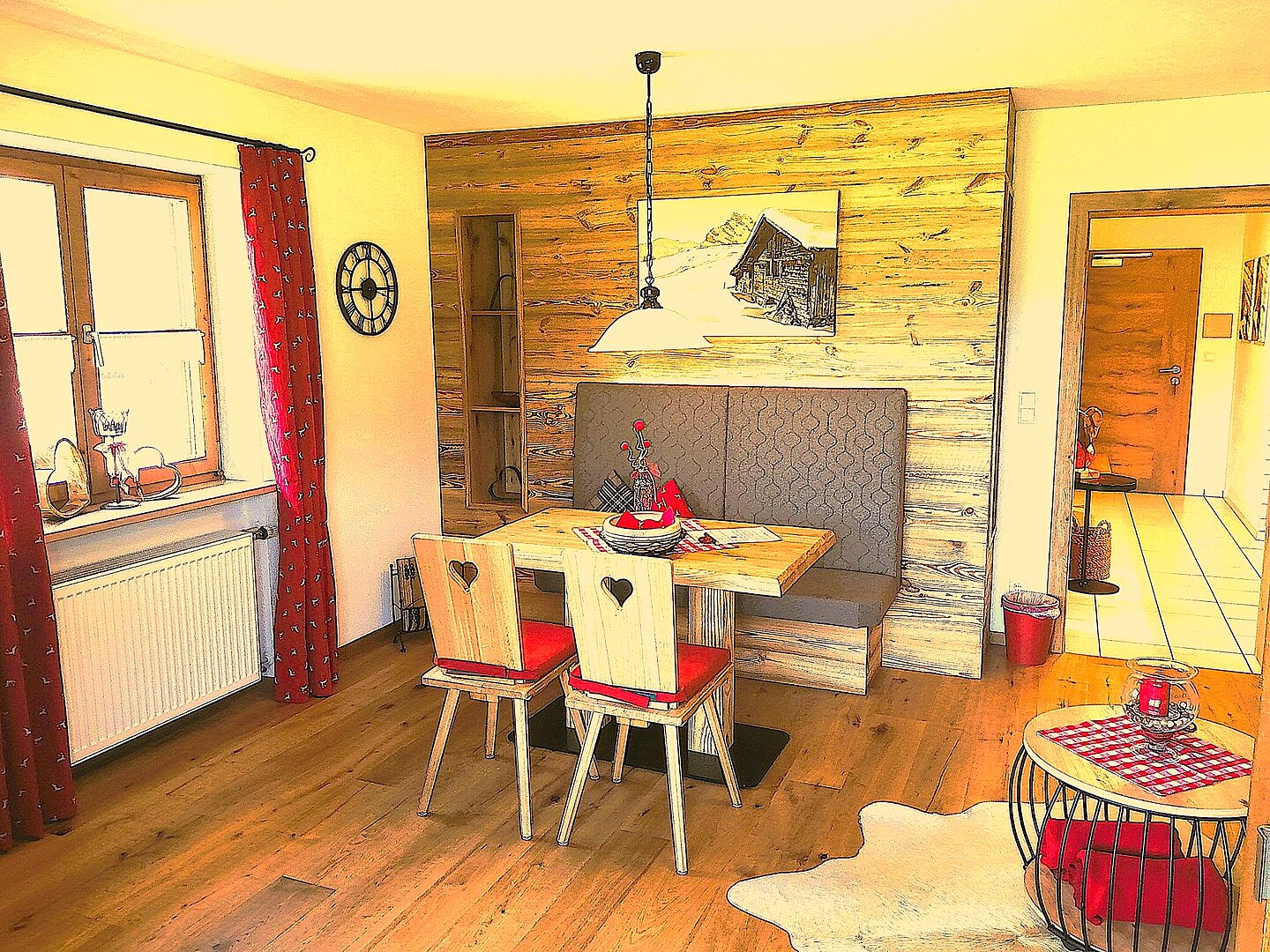 Die idyllische Drei-Raum-Ferienwohnung Almgenuss ist maßgeschneidert für 2 Erwachsene & 2 Kinder oder für Paare die etwas mehr Platz lieben!